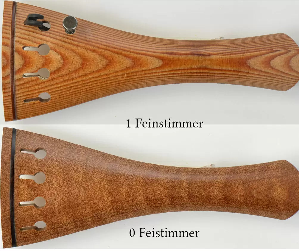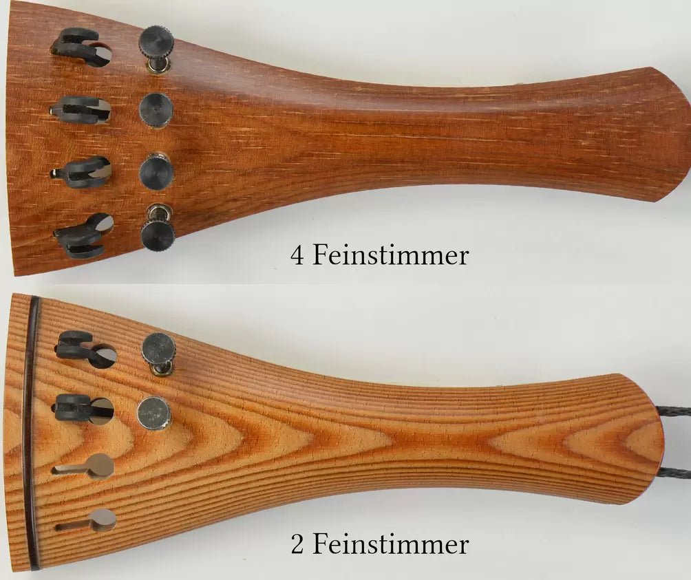 Feinstimmer von Bois d'Harmonie oder aus Titan von Stradpet. Die Saitenhalter mit 4 Feinstimmern erstellen wir ohne Sattel und versehen sie mit einer Einhängesaite aus Karbonfaser.
